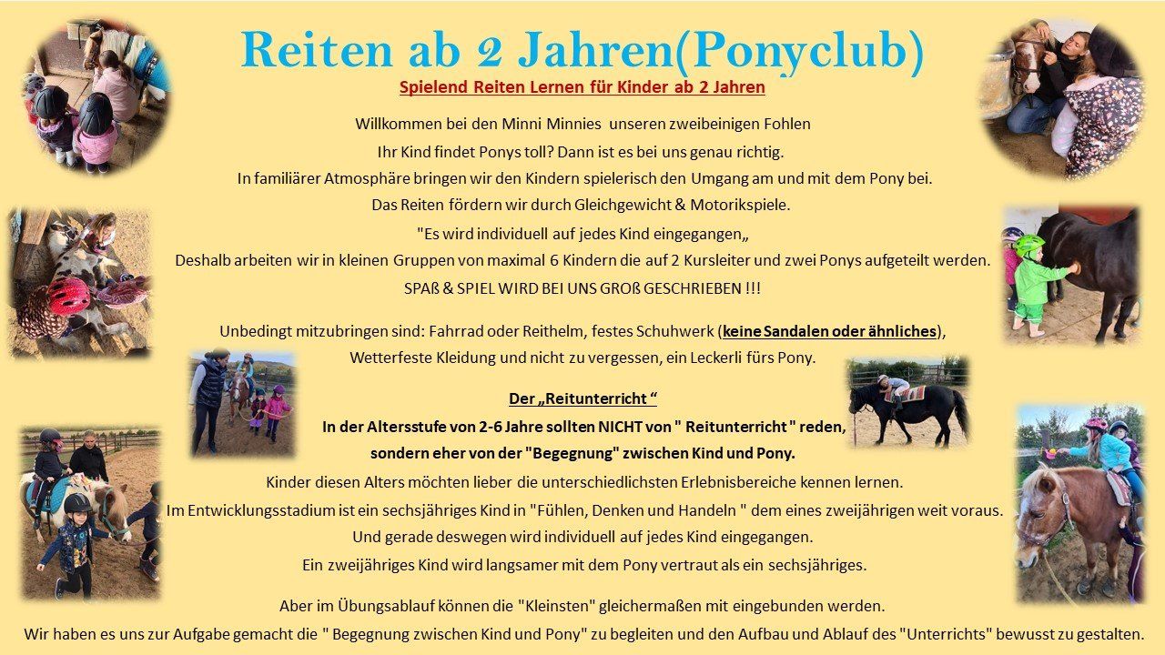 Ihr Kind findet Ponys toll? Dann ist es bei uns genau richtig. Bei uns gibt es keinen Reitstallstreß. In familiärer Atmosphäre bringen wir den Kindern spielerisch den Umgang am und mit dem Pony bei. Das Reiten fördern wir durch Gleichgewicht & Motorikspiele.