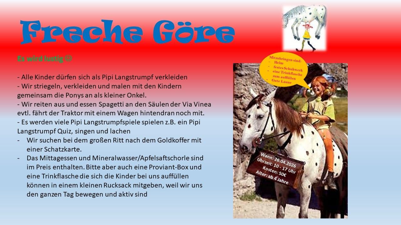 Vielen Dank für Ihre Anmeldung. Bitte denken sie daran das die Kinder alle verkleidet kommen dürfen! Es wird eine Whatsapp Gruppe geben in der alle Bilder von diesem Tag zu sehen sind.Bitte denken sie auch daran ihrem Kind eine auffüllbare Flasche mit zu geben die es sich immer auffüllen kann. Nicht zu vergessen einen Helm und festes Schuhwerk!
